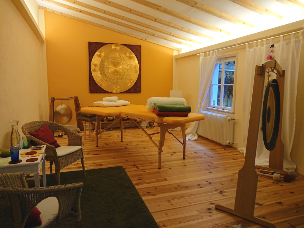 Der liebevoll gestaltete InnenRaum mit seiner wohltuenden Atmosphäre und Ruhe laden dazu ein, sich vollkommen auf die Klangmassagen oder das geistige Heilen einzulassen, zu entspannen und die Selbstheilungskräfte zu aktivieren.